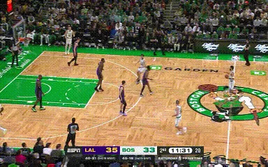 凯尔特人对阵湖人,塔图姆弧顶持球,科内特及时上提挡住防守人,塔图姆随后持球杀入内线,科内特将湖人内线防守球员完全挡住,此时塔图姆可以轻松上篮,不过他选择了传给底角无人防守的霍勒迪,后者轻松命中三分。