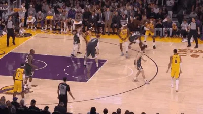 湖人对阵雄鹿的比赛中,詹姆斯右侧45度接球,霍华德在身后过来掩护,詹姆斯趁机摆脱防守他的马文·威廉姆斯,大洛且防且退防止詹姆斯攻筐,此时霍华德及时到篮下死死挡住大洛,詹姆斯轻松上篮完成终结。