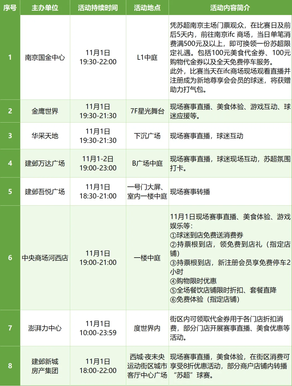 不止银杏里,国金中心、金鹰世界、华采天地、建邺万达广场、中央商场河西店、澎湃力中心等均有活动,包括现场直播赛事、美食体验、游戏娱乐等。